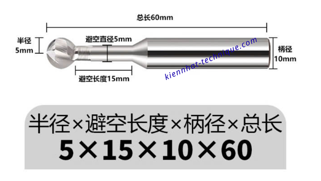 Đầu dao hình cầu/bán cầu → giúp dễ dàng cắt ở các biên dạng cong, hốc sâu, rãnh cầu.