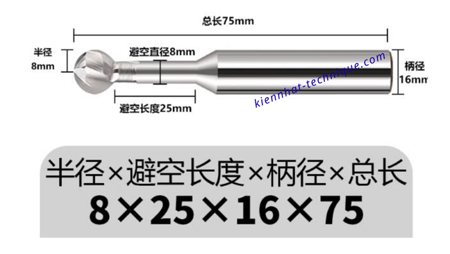 Đầu dao hình cầu/bán cầu → giúp dễ dàng cắt ở các biên dạng cong, hốc sâu, rãnh cầu.