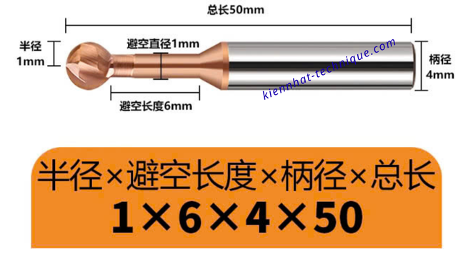 Đầu dao hình cầu/bán cầu → giúp dễ dàng cắt ở các biên dạng cong, hốc sâu, rãnh cầu.
