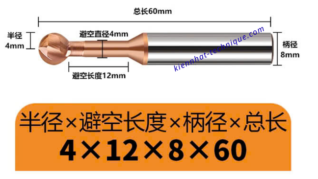 Đầu dao hình cầu/bán cầu → giúp dễ dàng cắt ở các biên dạng cong, hốc sâu, rãnh cầu.