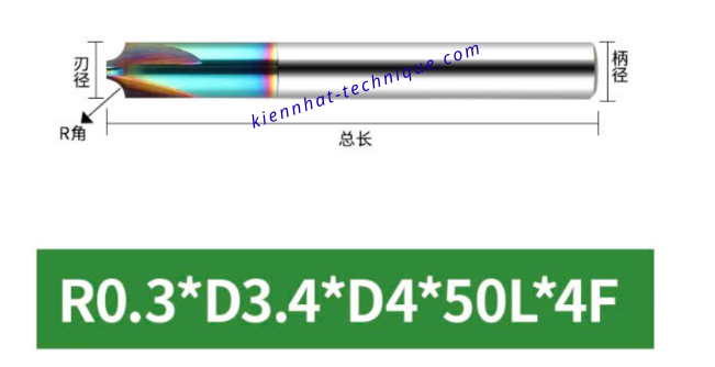 Mũi phay cầu lõm nhôm R0.3×3.4x4x50x4F