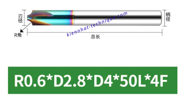 Mũi phay cầu lõm nhôm R0.6×2.8x4x50x4F