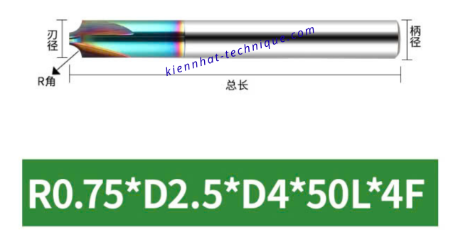 Qui cách: R0.75*2.5*D4*50*4T