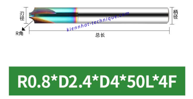 Mũi phay cầu lõm nhôm R0.8×2.4x4x50x4F
