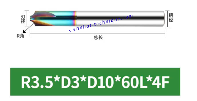 Mũi phay cầu lõm nhôm R3.5x3x10x60x4F