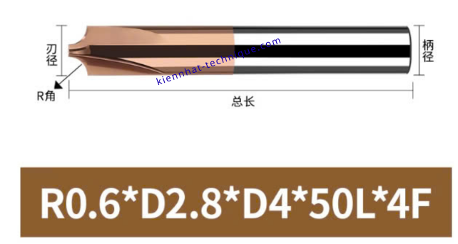 Mũi phay cầu lõm R0.6×2.8x4x50x4F
