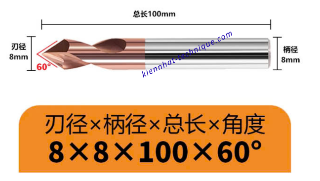 Đặt mua Mũi Spotdrill & Chamfer hợp kim D8*60°*100