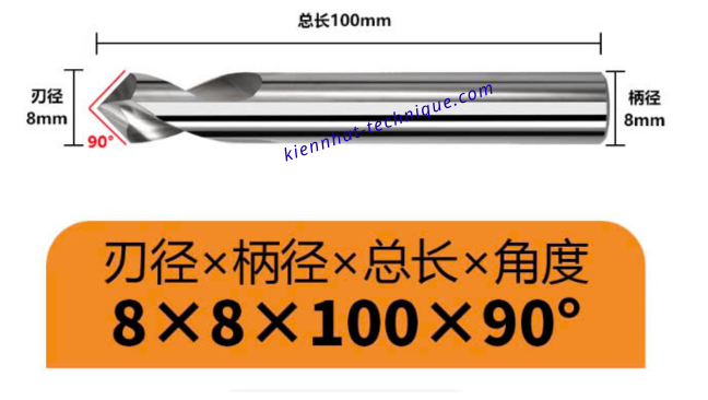 Mũi Spotdrill & Chamfer hợp kim nhôm D8*90°*100