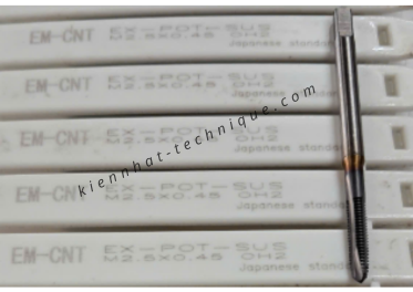 Mũi taro M2.5×0.45 TiCN PO là dụng cụ tạo ren trong hệ ren mét (Metric) với đường kính ren 2.5 mm và bước ren 0.45 mm. Mũi taro được phủ lớp TiCN (Titanium Carbonitride) giúp tăng độ cứng bề mặt, giảm ma sát và tăng tuổi thọ khi gia công kim loại.